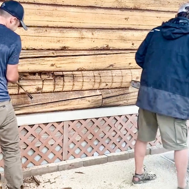 This step involves cutting into the dry rot log with a chain saw and removing the dry rot portions by hand.