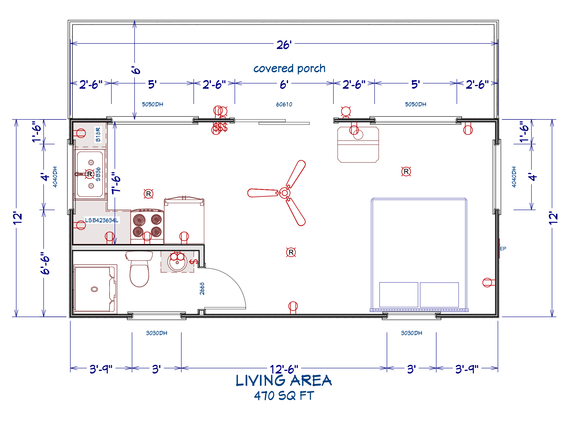 Cabin Dimensions: 12’ wide x 26’ long, 11’ wall height