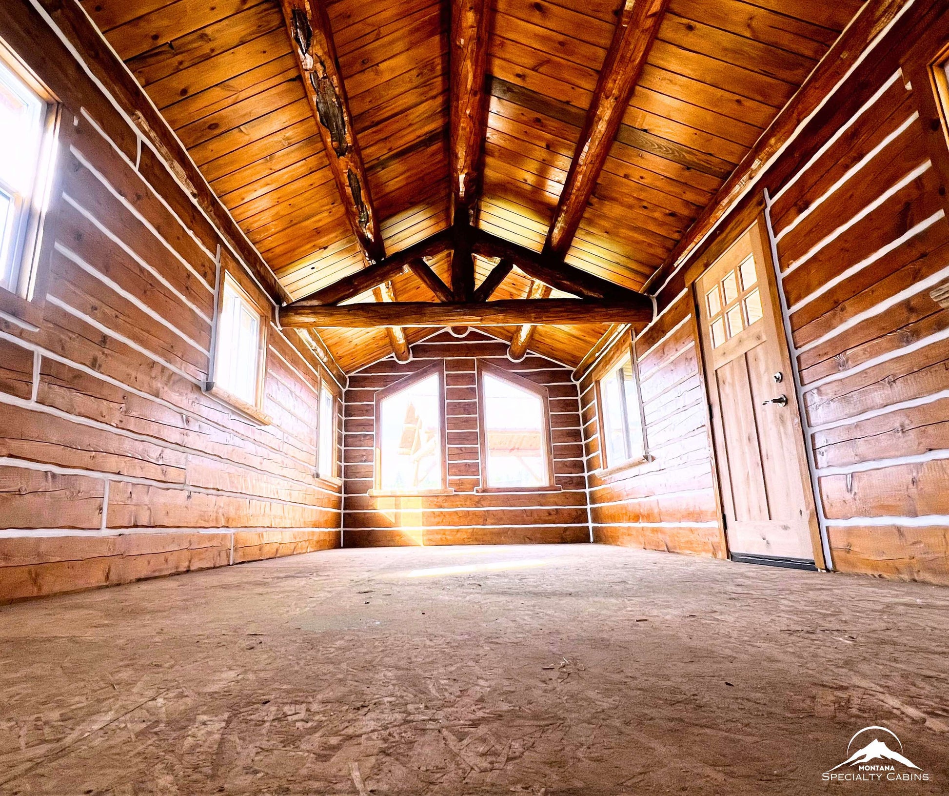 - Chinking: For a traditional log cabin look, the interior features white Log Jam Chinking.